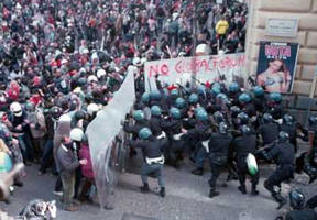 İtalya’da bir eylemde plexiglass kullanarak polisleri köşeye sıkıştıran eylemciler