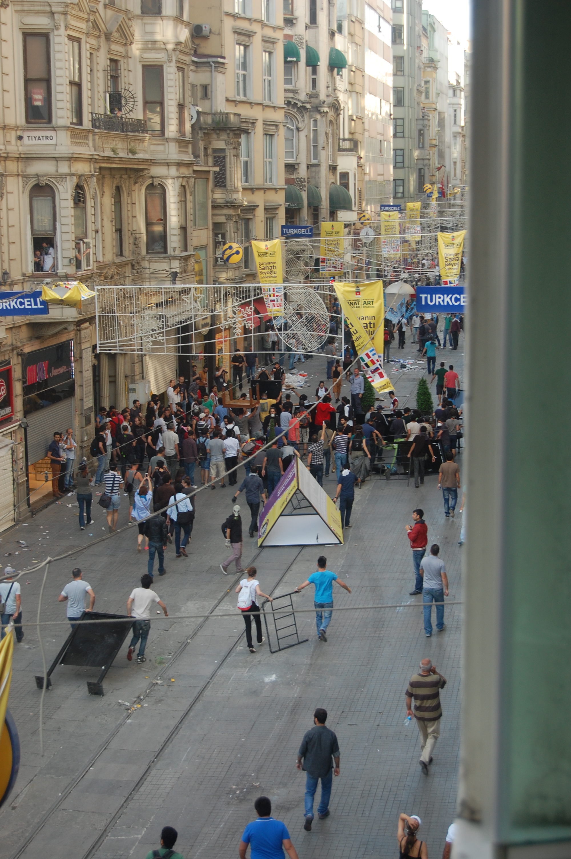 Galatasaray Meydanı’ndaki bir serginin demirleri sayesinde güzel bir barikat kurulmuştu.
