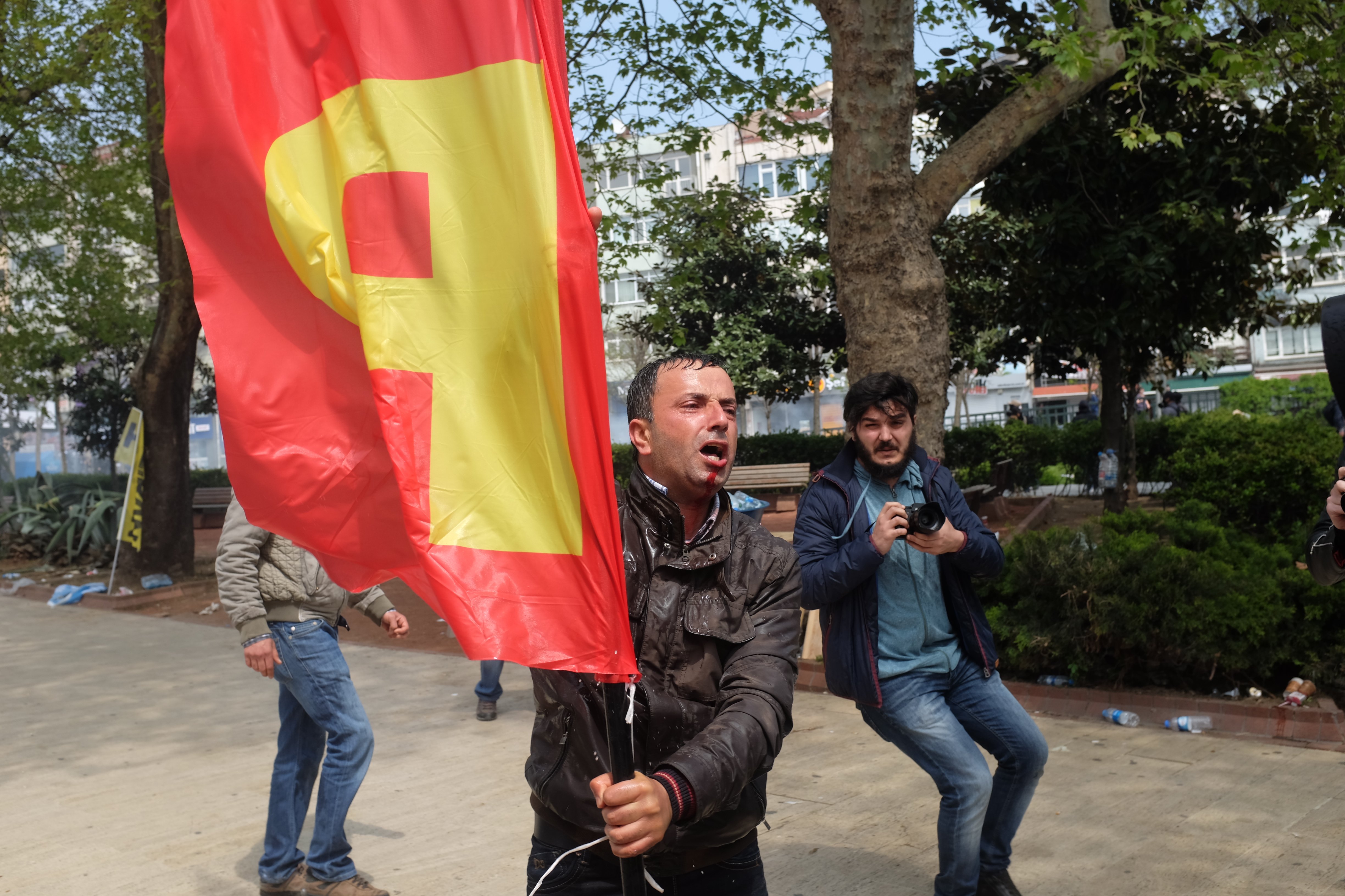 ← Taksim’de, işçi tulumuyla