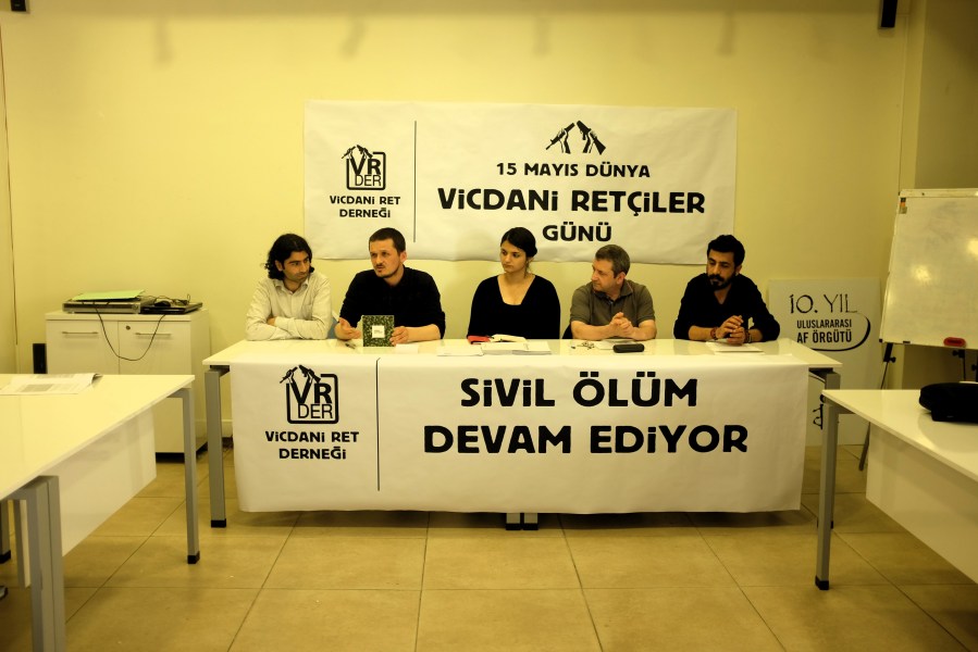 Vicdani retçi Avukat Mehmet Ali Başaran, internet sitesine soruşturma başlatılan “Askere gitmeyin” kitabı hakkında konuşurken.