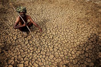 Hindistanlı bir çiftçi Karnataka eyaletinin güneyindeki Gauribidanur köyündeki kurumuş toprağının üzerinde çaresizce oturuyor.